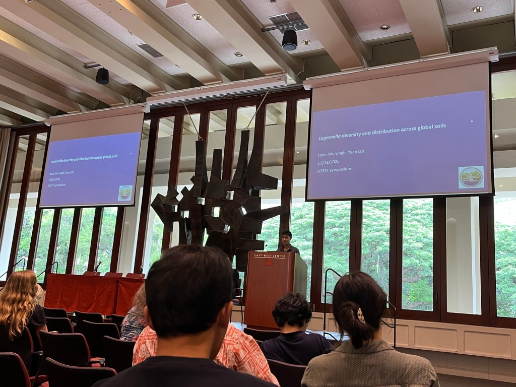 Hans presented his ongoing study about Legionella’s distribution in global soils at the 1st SOEST Symposium on November, 13, at the East West Center Conference Hall. This is the only talk from PBRC at the Symposium, showcasing how climate change can affect huma health via the function and ecology of microbes.